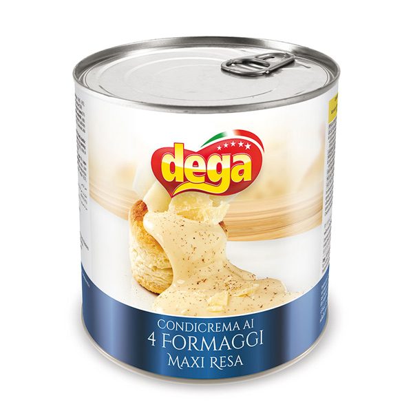 Crema densa, dall’alta resa, creata con formaggi fusi e burro: Fontal, Cheddar, Parmigiano Reggiano ed Emmenthal.