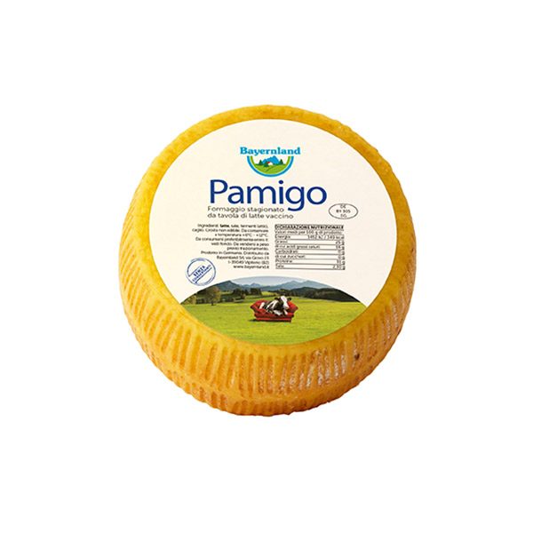 PAMIGO è un formaggio tradizionale appartenente alla vasta categoria dei formaggi del gusto deciso fino a piccante con l’avanzare della stagionatura. Questo tipico formaggio è prodotto con latte vaccino e caglio piccante. Si trasforma con la stagionatura da formaggio semiduro da tavola a formaggio a pasta dura, ottimo per essere grattugiato.