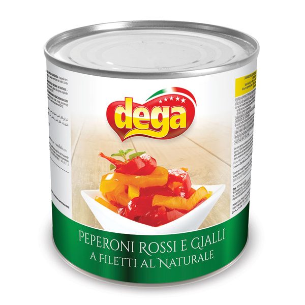 Filetti di peperoni scelti tra i più carnosi, confezionati con l’aggiunta di acqua, sale e zucchero.
