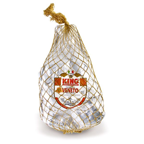 Rifilato e pronto al taglio, il Prosciutto Veneto Berico Euganeo DOP, nella versione addobbo permette di ottenere delle fette tondeggianti che riprendono la forma anatomica della coscia suina.